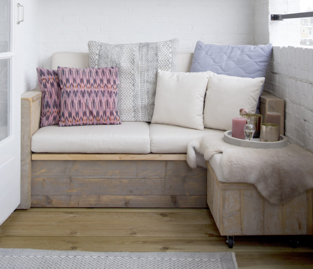 Het overdekte balkon werd bij de woning betrokken, zodat er een extra hoekje gecreëerd werd.